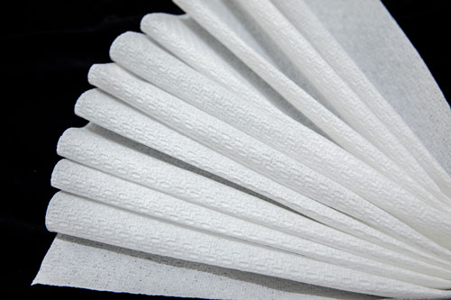 本產(chǎn)品以聚丙烯紡粘、木漿纖維為原料,采用濕法工藝制成的一種水刺非織造布,具有吸水性好,強力高,不易變形等特點;采用凹凸壓花輥進(jìn)行米字紋壓花,增加布面立體感,不易掉屑,提高擦拭效果,是廚房用擦拭布理想材料。